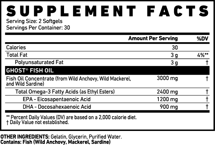 As a dietary supplement, consume 2 softgels (1 serving) of GHOST® FISH OIL daily with food and water.
