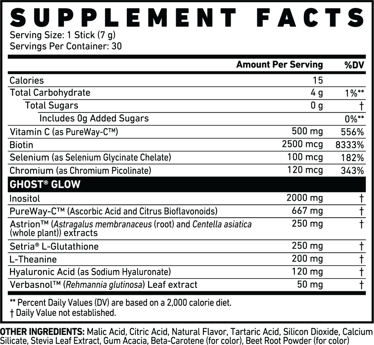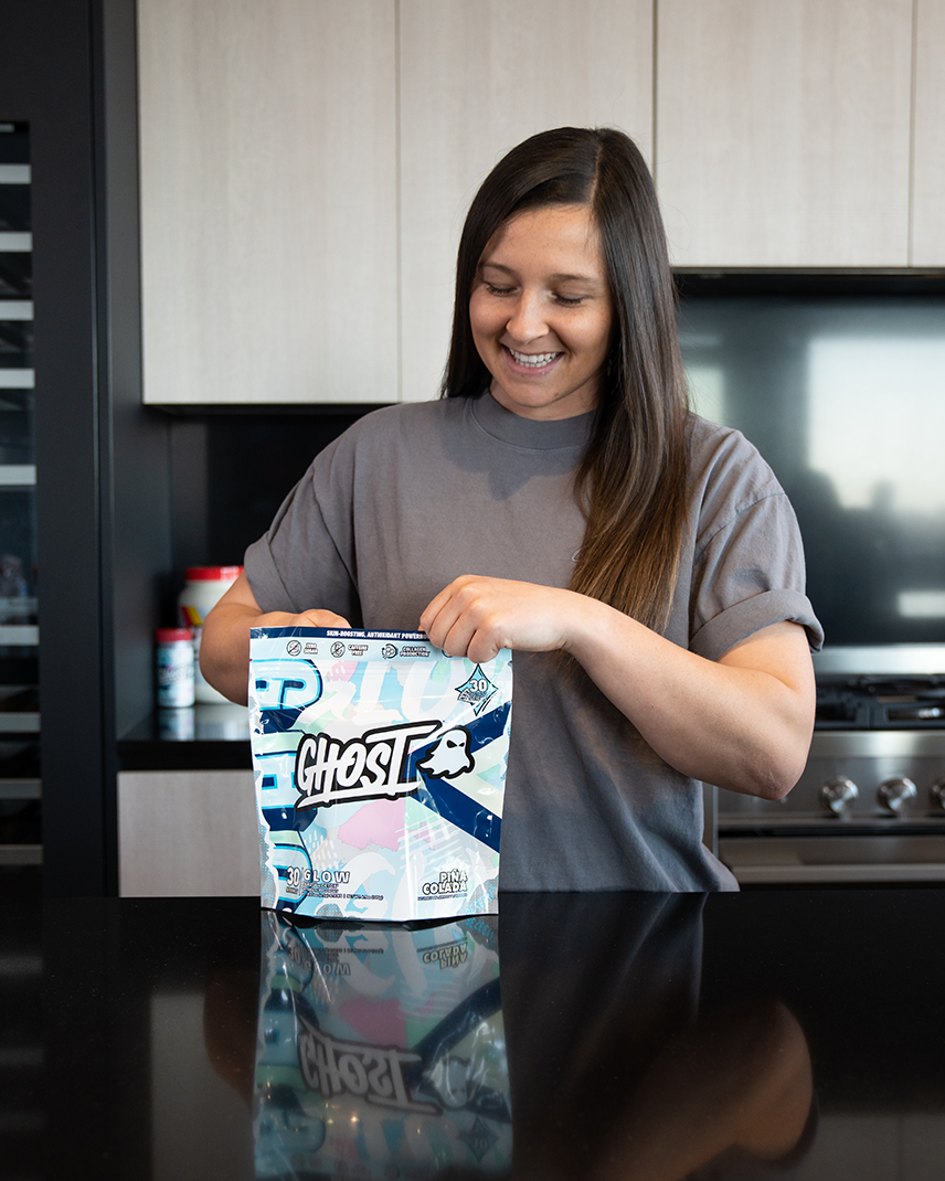 As a dietary supplement, mix one scoop (1 serving) of GHOST® GLOW with 8-10 oz of water or beverage of choice. Vary amount of liquid to taste. Integrate with your daily skin care regimen and drink plenty of water.