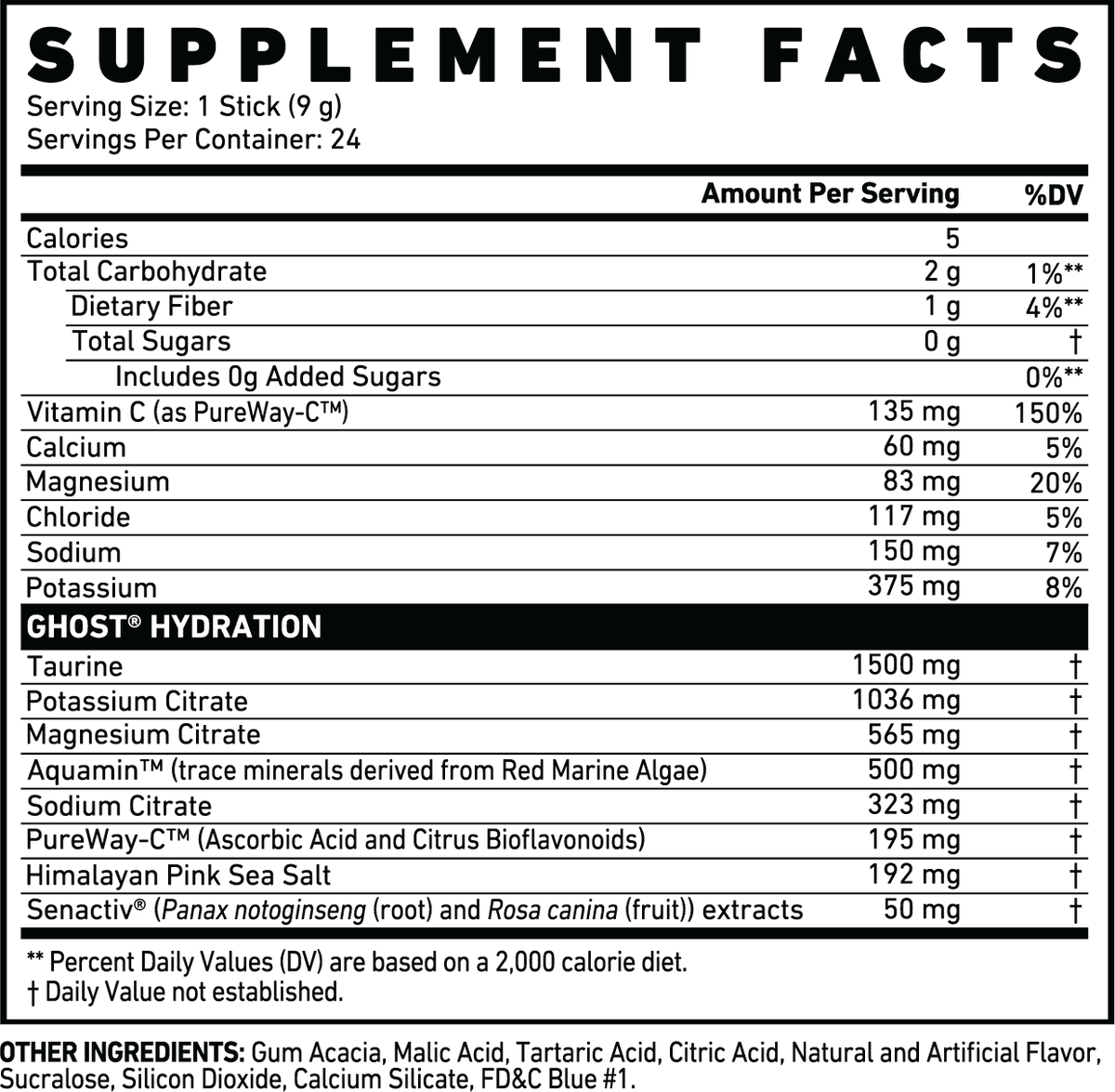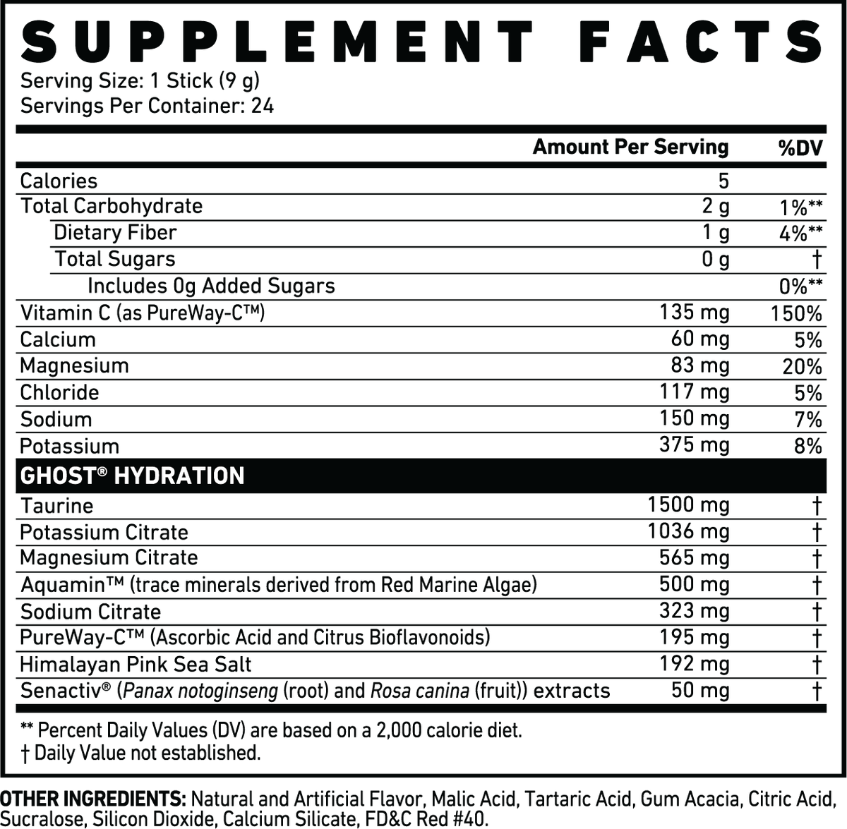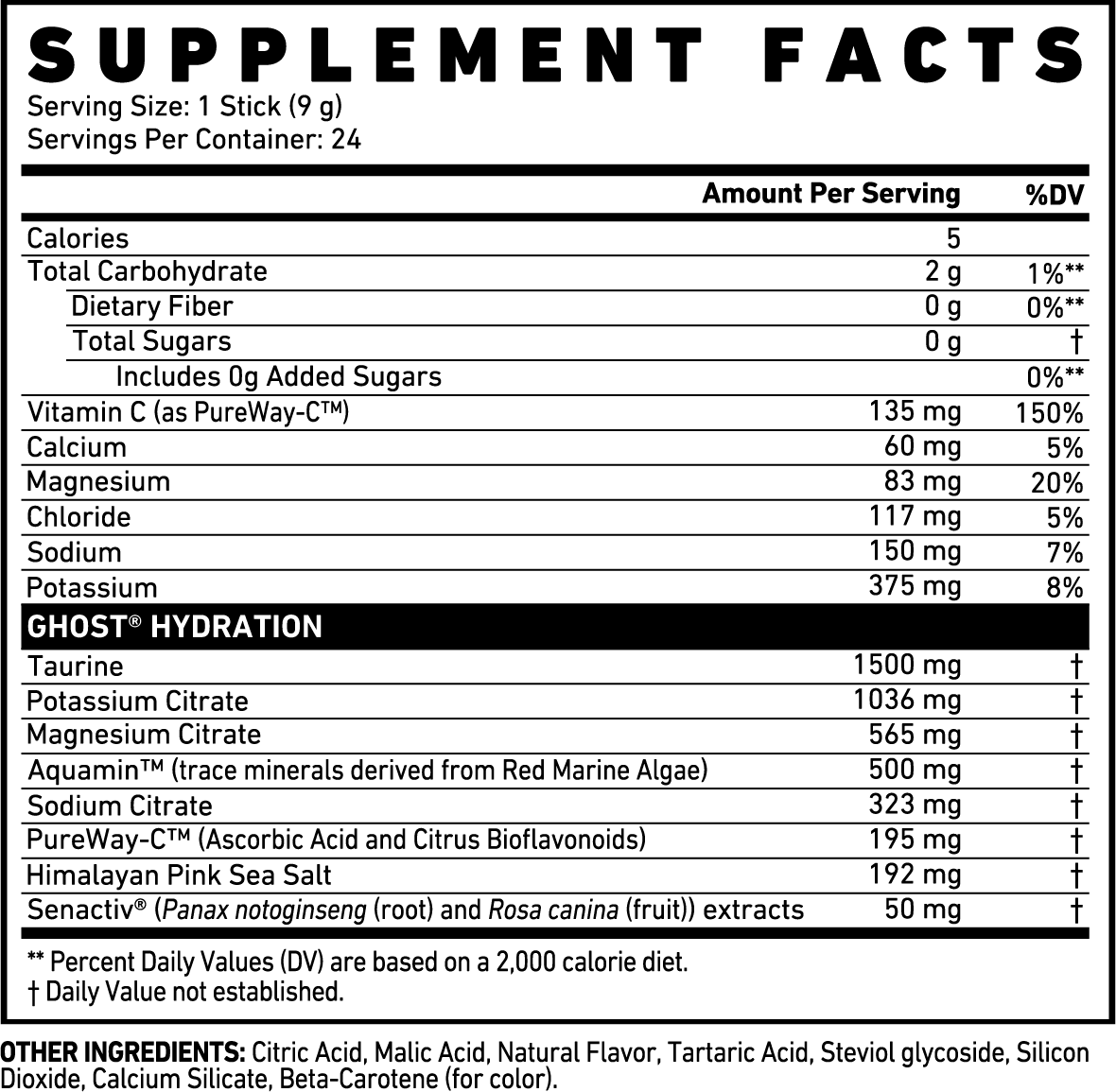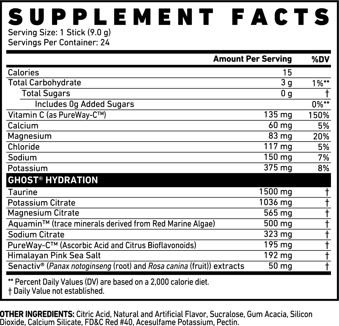Mix each stick (serving) of GHOST® Hydration with 12-14 oz of water or beverage of choice. Vary amount of liquid to taste. Consume during or after exercise on training days or throughout the day as an electrolyte thirst quencher.