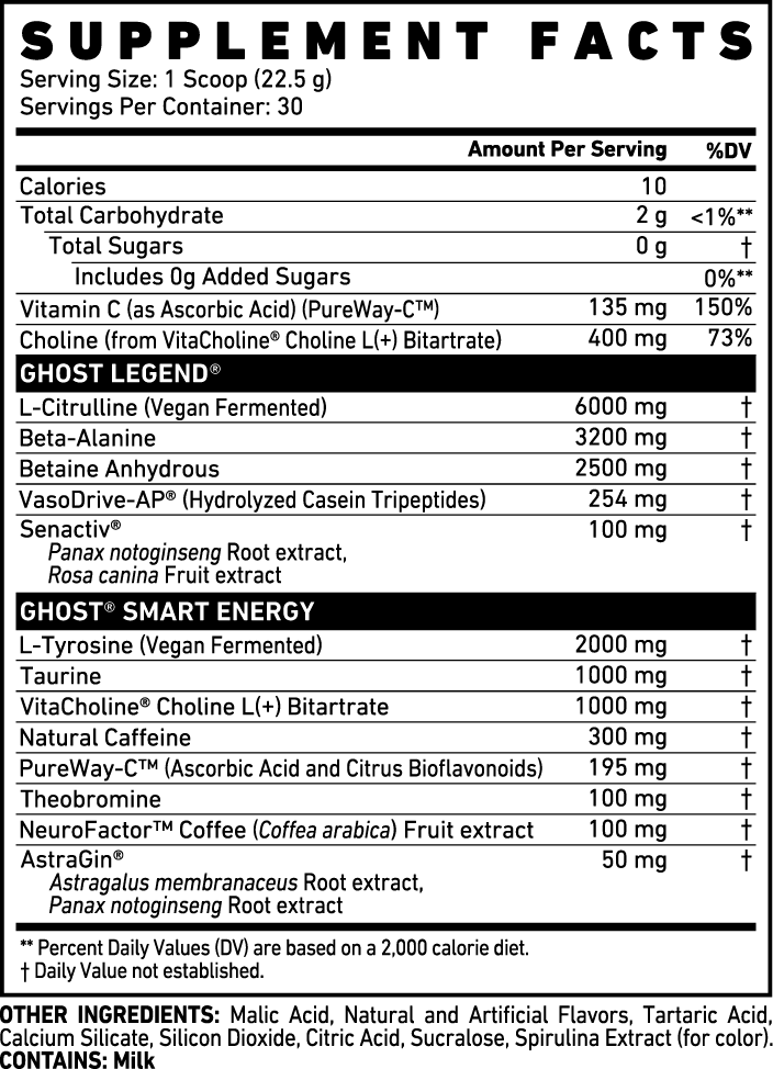 †Compared to original GHOST LEGEND® pre-workout formula.