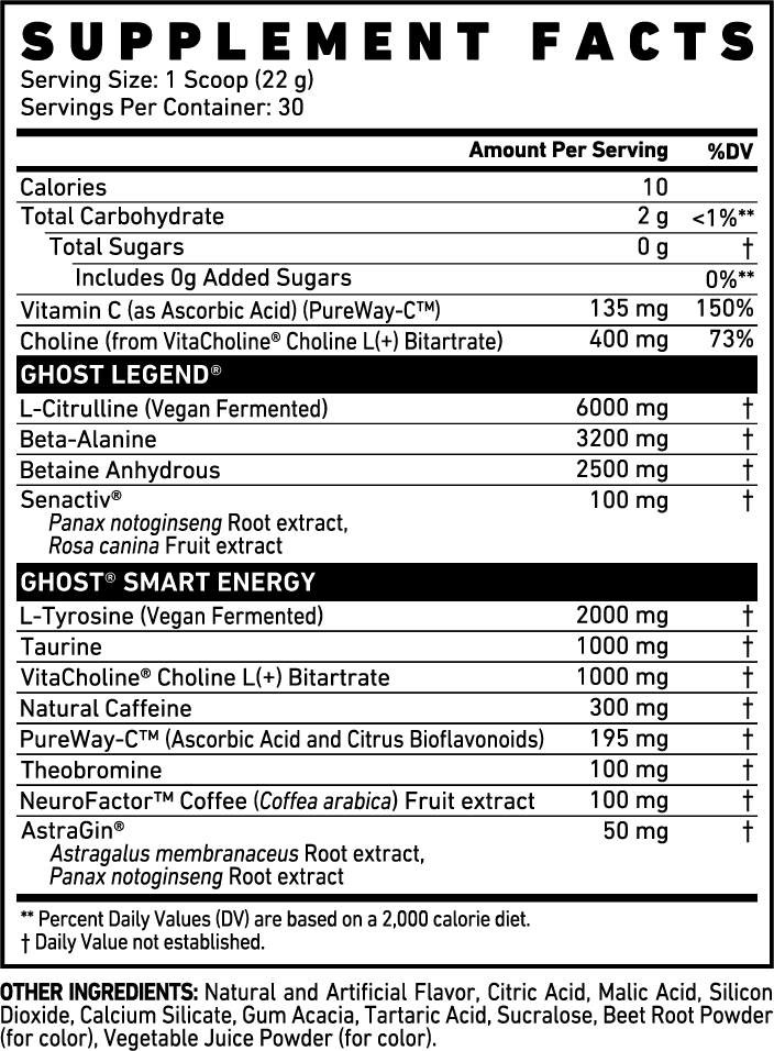 †Compared to original GHOST LEGEND® pre-workout formula.