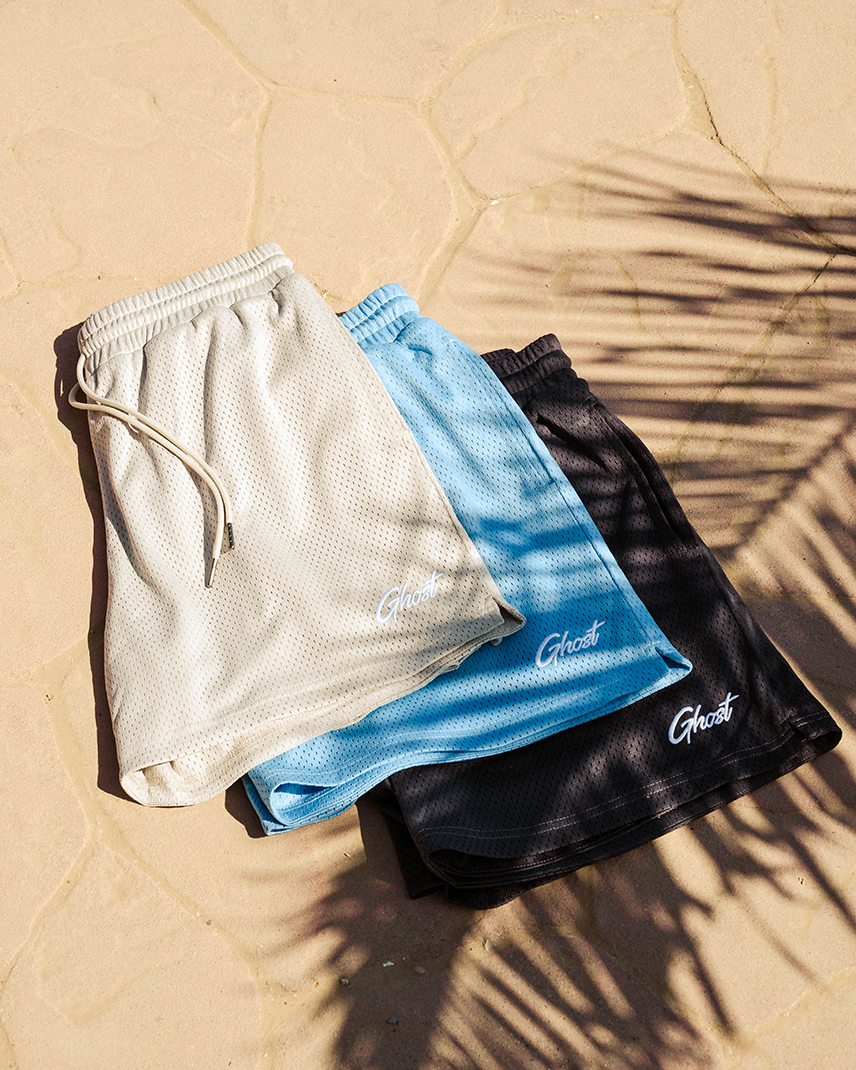 Giving all the beach vibes with the GHOST® SUMMER INSPO MESH SHORTS. Simple, elevated apparel with all the GHOST® feels.